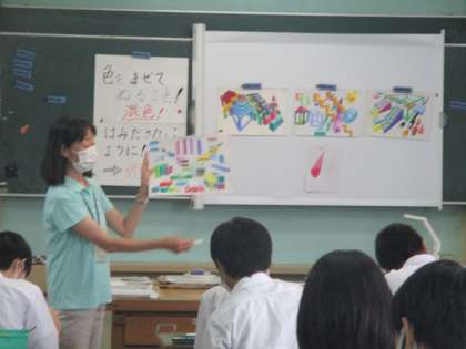 2年美術 皆さんの得意な色彩的なセンスを楽しみにしています。