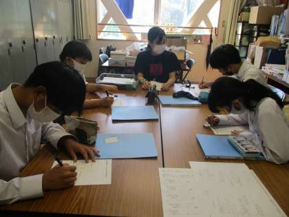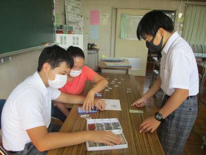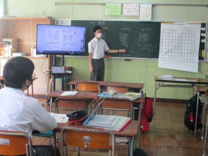 6組数学。どのグループも真剣に取り組んでいます。時々、先生たちの学習に関連付けた楽しいお話が聞こえてきます。