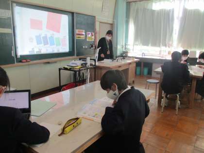 1年家庭科 文房具のようにタブレットPCが使われているのもいいですね。