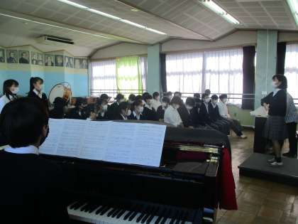 3年音楽 最後の最後まで完成に向けて頑張っていました。うまくいったときは、皆で拍手!