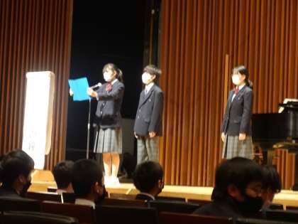 歌の紹介、合唱、どのクラスも今回のテーマである「全力」で取り組んできたことがにじみ出ました。めくりプロ担当者もミスが無いようにと舞台袖でも全神経を集中していた姿に感心しました。