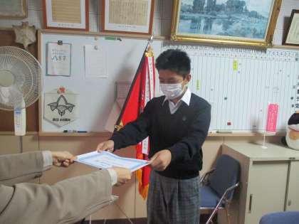 次回の生徒会朝礼では会長から各委員長に委嘱状を渡してくれます。