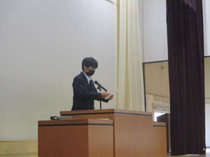 校長からは合唱祭の保護者等からいただいた生徒へのメッセージの紹介、そして11月の「ふれあい月間(いじめ防止月間)」に向けた恒例のチェックを行いました。