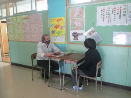 1年英語 スピーキングテスト、緊張しながらもみんなよく頑張っていました。