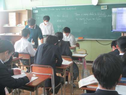 1年英語 英語が得意な数学の先生も一緒に指導、writingの学習。