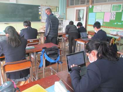6組表現 タブレットPCで調べ学習とパワポ作り。