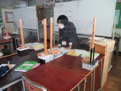 1年技術 テスト返却。悲喜こもごもで、今の思いを次のバネに。若い皆さんには∞(無限)の可能性あり!