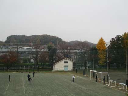 紅葉、そして落葉ですっかり冬景色になりつつある校庭でサッカーをする姿、健康的で良いですね。