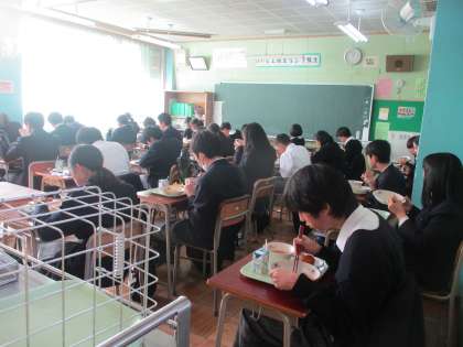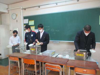 どの学級も黙食、目礼(長沼小ではこの数年、会釈にも力を入れているそうです。)も立派です。大人気のキムチチャーハン、静かにおかわりに並ぶ姿もいいですね。