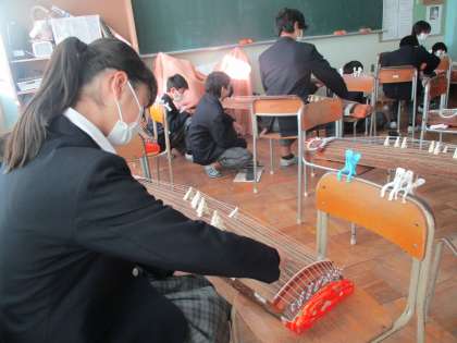 1年音楽 琴を弾くときは「はじく」というより「押す」んだそうです。