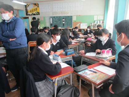 2年社会 学び合いの授業。明星大学のインターンの方もいました。