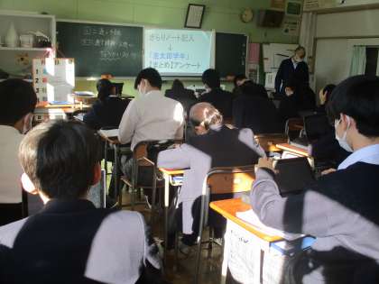 3年道徳 「学び合い×ICT」じっくりと自分自身と対話中の生徒の皆さん。
