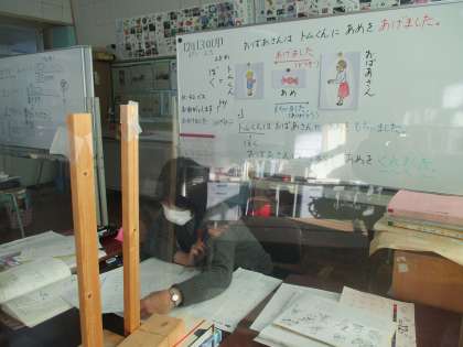 日本語学級 あげました、もらいました、くれました・・・。一つ一つ状況を確認しながら練習していました。