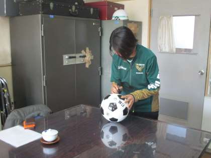 2年生・6組の生徒、サッカーボール、色紙・・。サインをたくさんいただきました。