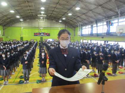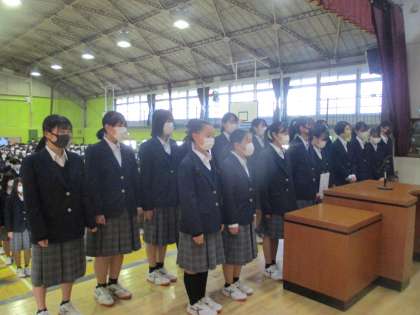 税の作文コンクール、バレーボール部の表彰、11月からきてくださっている副校長補佐の鈴木さんの紹介、あと1週間で2学期を終える心構えや階段は右側通行等のお話がありました。