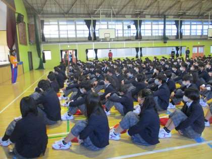 朝の冷える体育館の中でも生徒の皆さんはいつもどおりの素晴らしい聴く態度でした。
