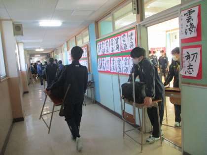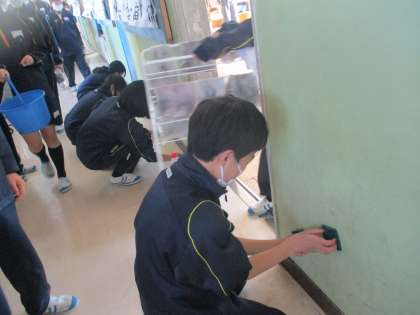 午後は全学級大掃除開始、1年生もぶつからないようお互いに声をかけながら物を運んだり、床を一生懸命磨いたり・・・立派です。家庭でも普段から掃除のお手伝いをよくやっているのでしょう。