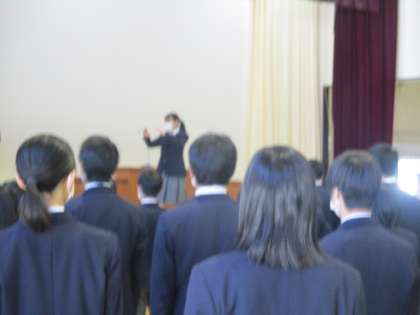 ・12月の生徒アンケートでは「自分は部活動・委員会・係活動・行事に熱心に取り組んだ」と肯定的な回答をした生徒が95%もいたこと。昨年度は91%、その前は72%から比べてみても、感染症対応の中においても頑張ってきたこと。残り5%の生徒は3学期での活躍に期待していること。