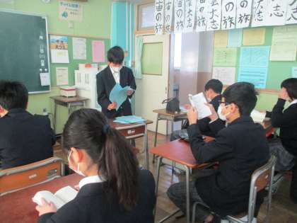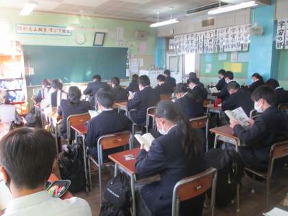 静かに朝読書、学活、保健委員さんによる健康観察カード集め。