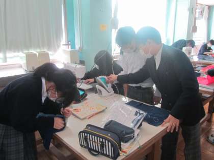 1年家庭科 学び合い、友達にさりげなくアドバイスする優しい姿がたくさんありました。