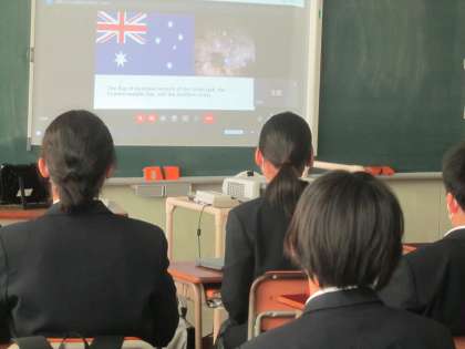 国際理解教育の一つとして本校がオリ・パラで応援したオーストラリアについてのお話をALTの先生から学びました。