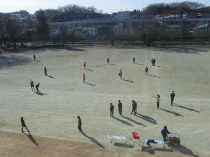 6組体育 サッカー。寒さを感じさせないよい動きです。
