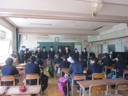 6組学活 3年生の進路報告会。1.2年生は憧れの先輩たちから良い刺激をもらって進級の時期を迎えます。