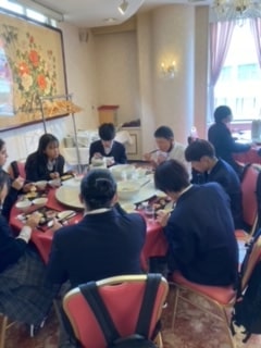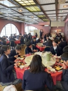 副校長先生がチェック後の円卓での2年生の食事風景を送ってきてくれました。