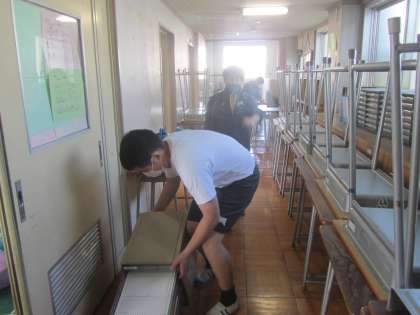 6組大掃除 物をすべて運び出し、すみずみまできれいにしてくれました。さわやかに新入生を迎えられますね。
