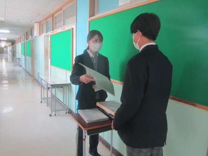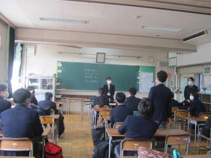 通知表を渡しながら、1年間を振り返る学活の時間です。
