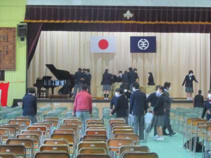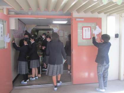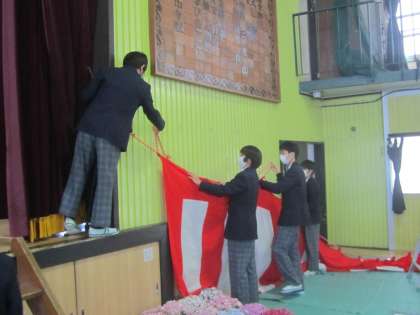 明日の入学式のために「心をこめて」準備をしている生徒の皆さん。