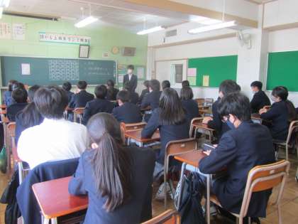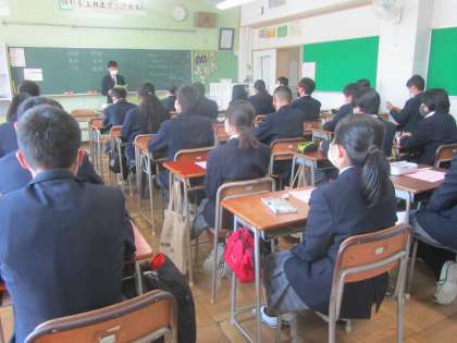 3年生は各学級で自己紹介、5組の生徒も一緒です。