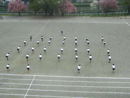3年体育 4階から見てもきれいに整列。