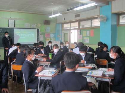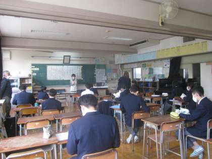 5組 校歌の練習など。3年生があいさつをふくめよく引っ張っていってくれています。