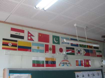 日本語学級 生徒数の増加に伴い、さらにいろいろな国の旗が増えてききました。また1名増える予定です。