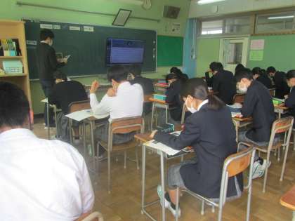 昨年度から市からいただいたデジタル教科書を生かして「音声学習」の強化を図っています。
