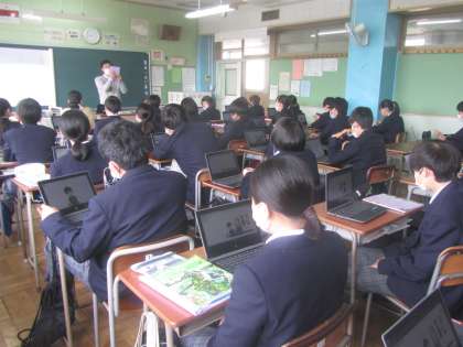 市(国)からいただいた英語のデジタル教科書・教材をもちいた音読指導(今後は朝学習で実施)もご覧いただきました。
