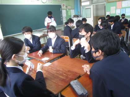 2年 転入生とまずはカードゲームで仲良くふれあい。「いつでも どこでも だれとでも」上手に関わることができる力をはぐくむ絶好の機会です。