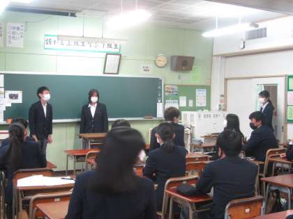 週明けの学活、どのクラスもやる気にあふれていて素晴らしいです。