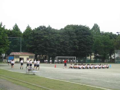 体育 バトンの受け渡し練習。