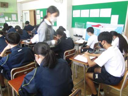 短時間でも継続していけばかなりの時間になります。部活や地域の活動で忙しい生徒の皆さんも、ぜひ学校の授業以外に主体的な学習(時間のめやす「(6+自分の学年)×10分+アルファ」)を頑張っていってほしいと思います。