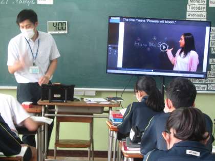 相手に伝えるためにははっきりした英語らしい発声が大切です。日本語より息が深く、発音の強弱があることを意識しながら声を出す必要があるので、距離をとって練習していました。