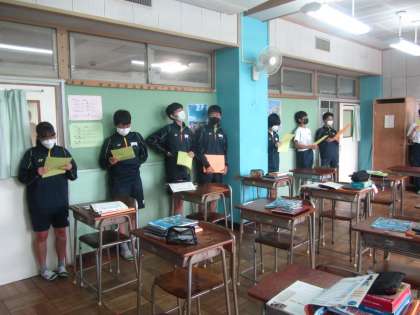 3年英語 モデルスピーチを見た後は、自分のメッセージがしっかり聴衆に伝わる原稿づくり、発音練習を行いました。