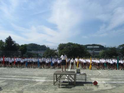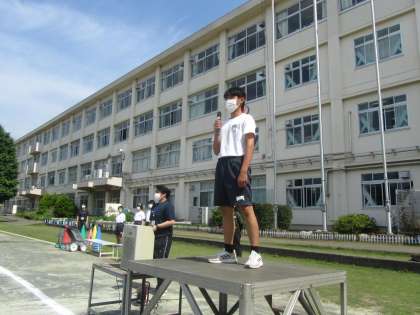 月曜初めの練習でしたが、大変上手に入場行進、開会式・閉会式の練習ができました。生徒の皆さんの「本気度」が感じられます。暑い日が続きます。一人一人が力を発揮できるよう、そして熱中症防止、健康管理、「早寝早起き朝ごはん」を大切に当日を迎えてほしいと思います。