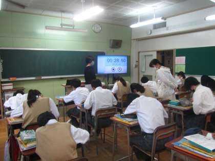 1年英語 初めての定期テストに向けてどのくらいできるか試してみていました。集中力が素晴らしいです。