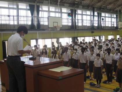 今朝の生徒会朝礼は、生徒会長、図書委員長、選挙管理委員長からお話がありました。