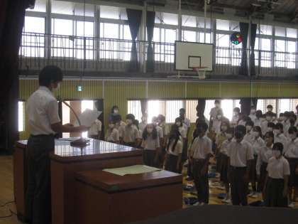 暑い中、縁の下の力持ちの放送委員も頑張っていました。