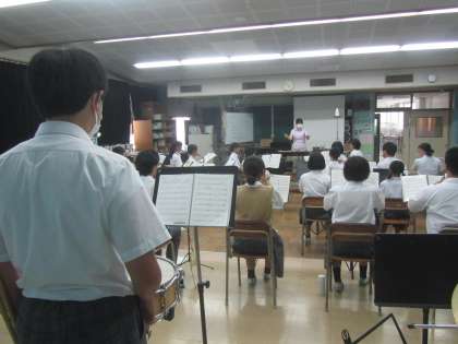 今年も迫力がある吹奏楽部、美術部の皆+理科の櫻井先生。