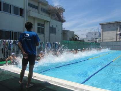 3年体育 クーラーもよいですが、自然の冷たさが最高の1日、水に入った時に生徒の皆さんの笑顔がありました。
