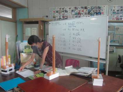日本語学級 日本に来てわずかの間にきれいに発音、表現できる生徒の皆さんの姿に感心します。この教室に来ると、その陰で日本語学級と家庭学習でコツコツと地道な努力をしていることがよくわかります。